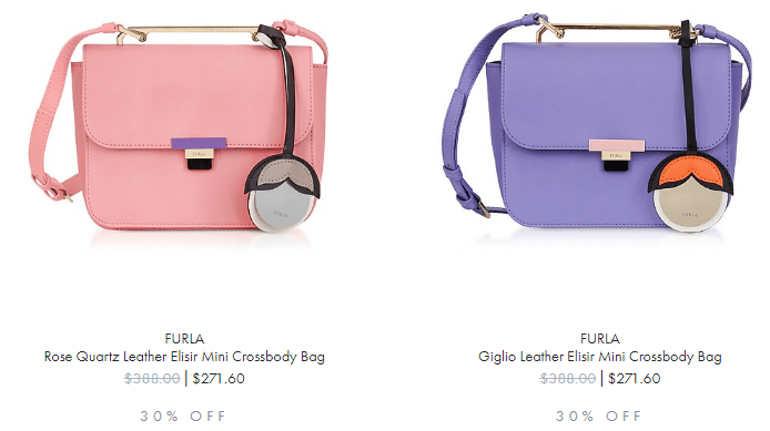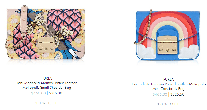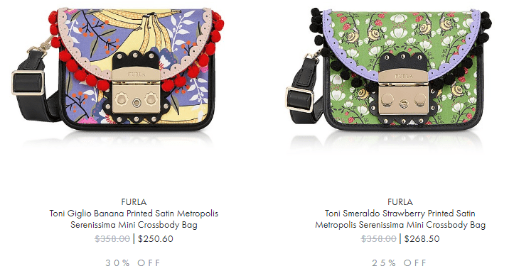 Furla小挎包7折起,印花带小绒球的花包很可爱,金属杆造型小包Elisir优雅别致。
