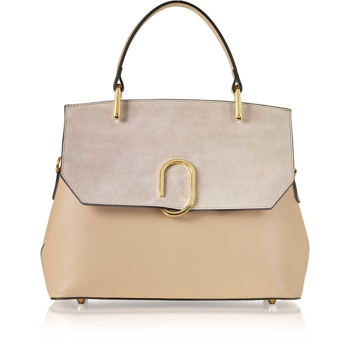 Thais手提袋,麂皮和皮质的设计,款式是很经典的翻盖手提,很适合通勤见客户来背
