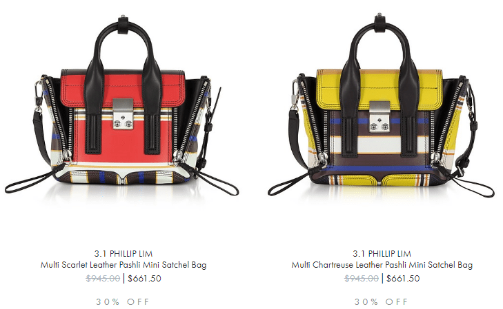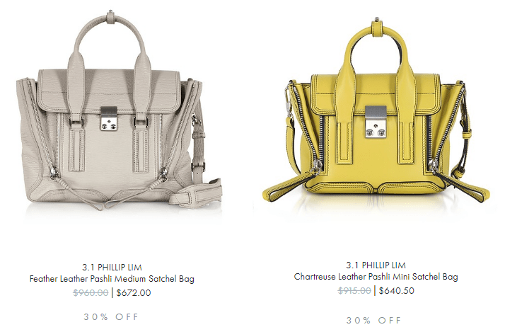现在还有2018春夏季精选单品5折起大促,3.1 Phillip Lim 经典Pashli包、Alix回形针包新配色有7折,他家皮质耐磨耐用,款式经典好搭配。
